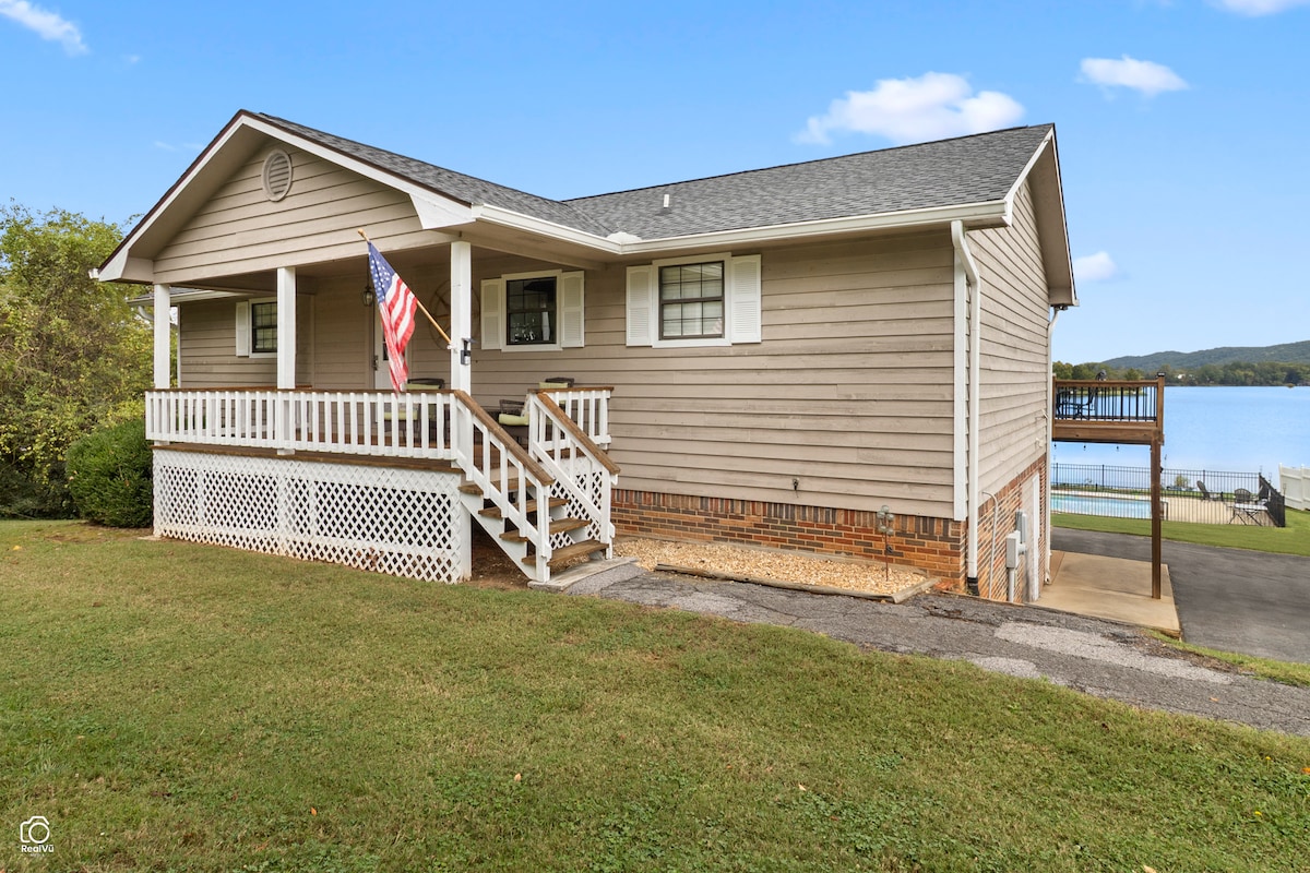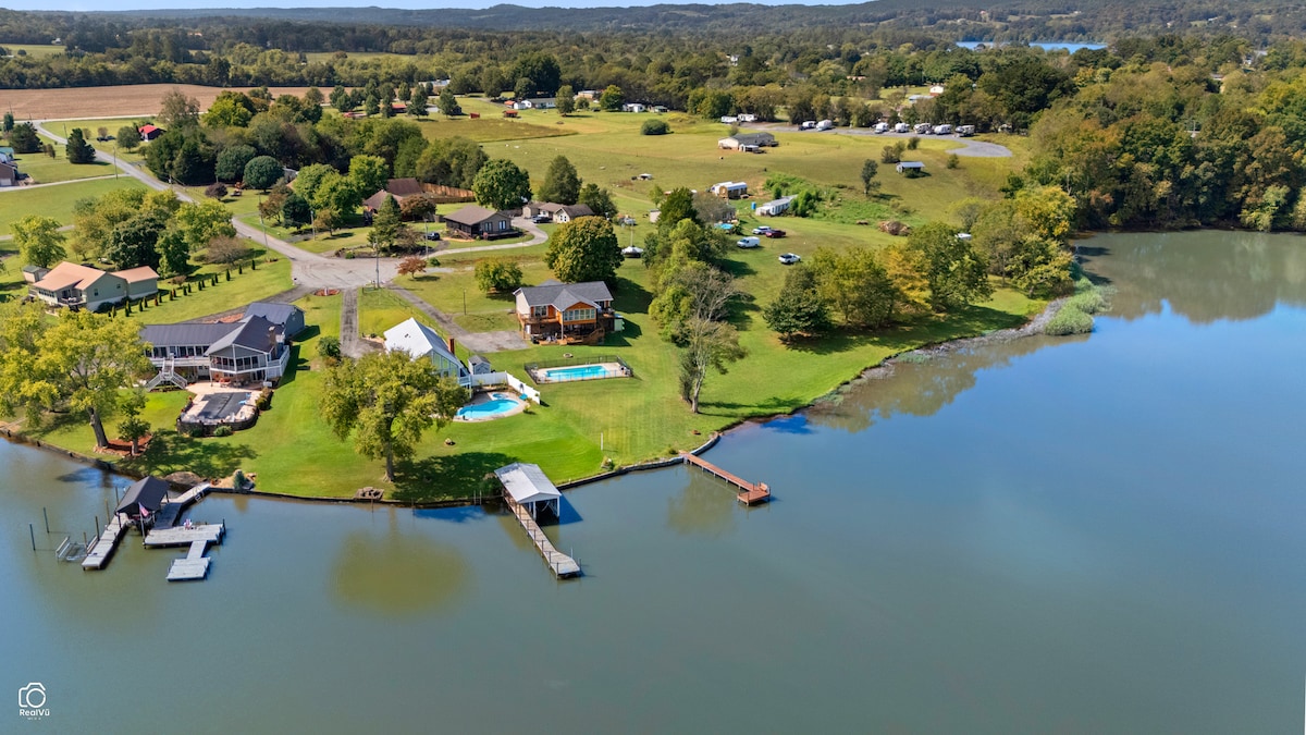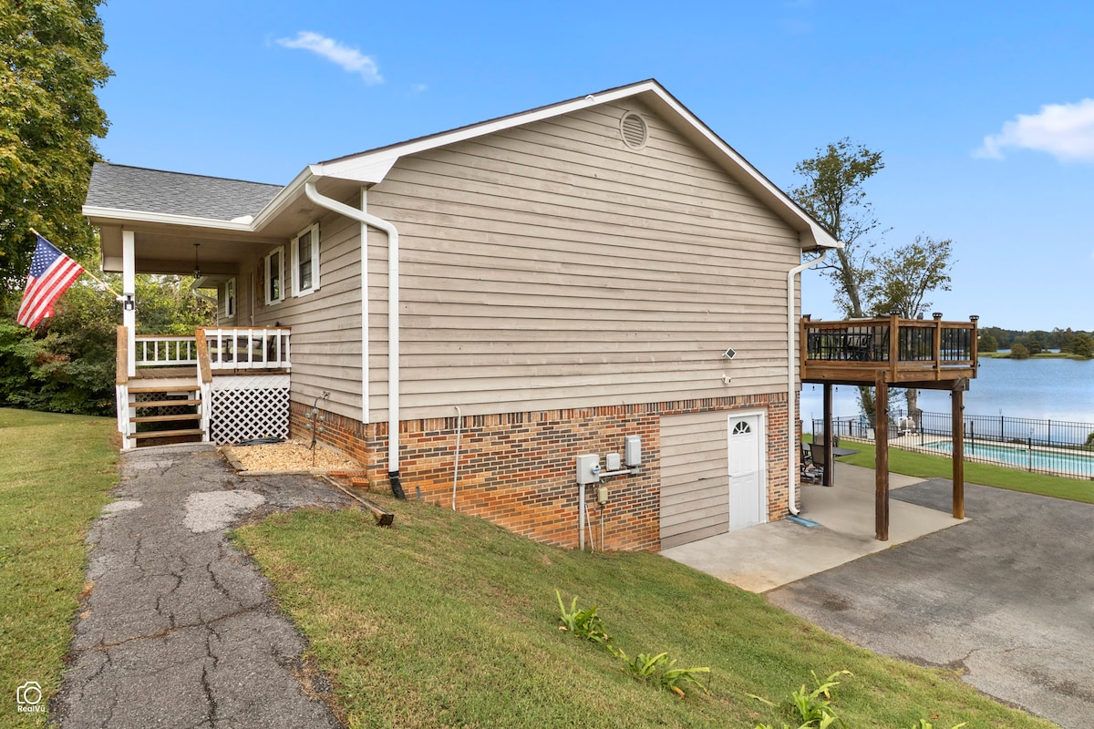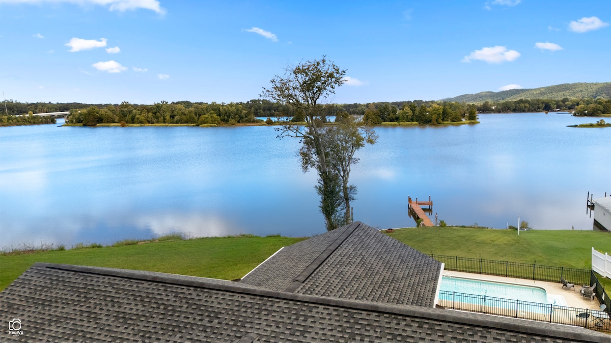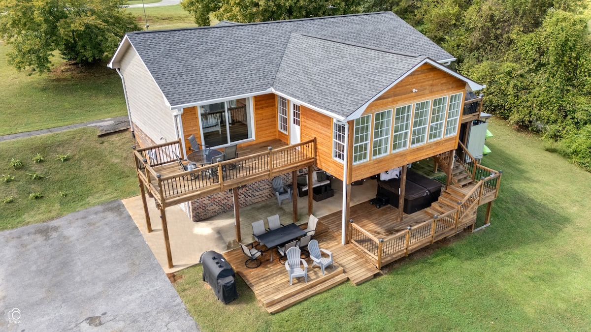 GeorgetownEnjoy the incredible view of the Hiwassee River, a private dock, & plenty of parking in the driveway, plus the separate drive for RV & boat storage! Inside, open kitchen with the most massive farmhouse dining table you've seen! From here, look into the sunroom with wrap around windows taking in the fabulous lake views & crisp air from the decks! Downstairs is a den with full bath/laundry room. Out back is a concrete patio across the entire back, deck with hot tub, outdoor shower, & fenced pool!