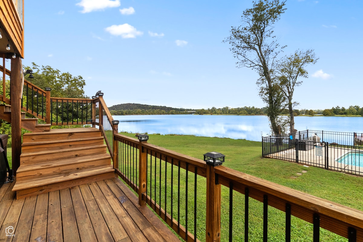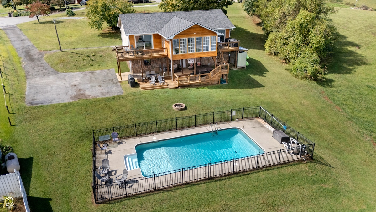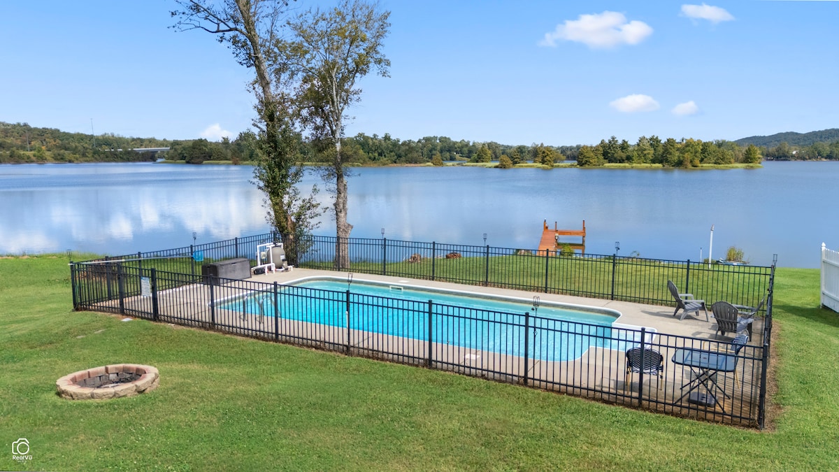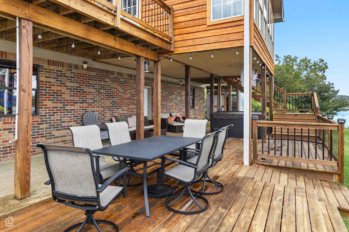 GeorgetownEnjoy the incredible view of the Hiwassee River, a private dock, & plenty of parking in the driveway, plus the separate drive for RV & boat storage! Inside, open kitchen with the most massive farmhouse dining table you've seen! From here, look into the sunroom with wrap around windows taking in the fabulous lake views & crisp air from the decks! Downstairs is a den with full bath/laundry room. Out back is a concrete patio across the entire back, deck with hot tub, outdoor shower, & fenced pool!